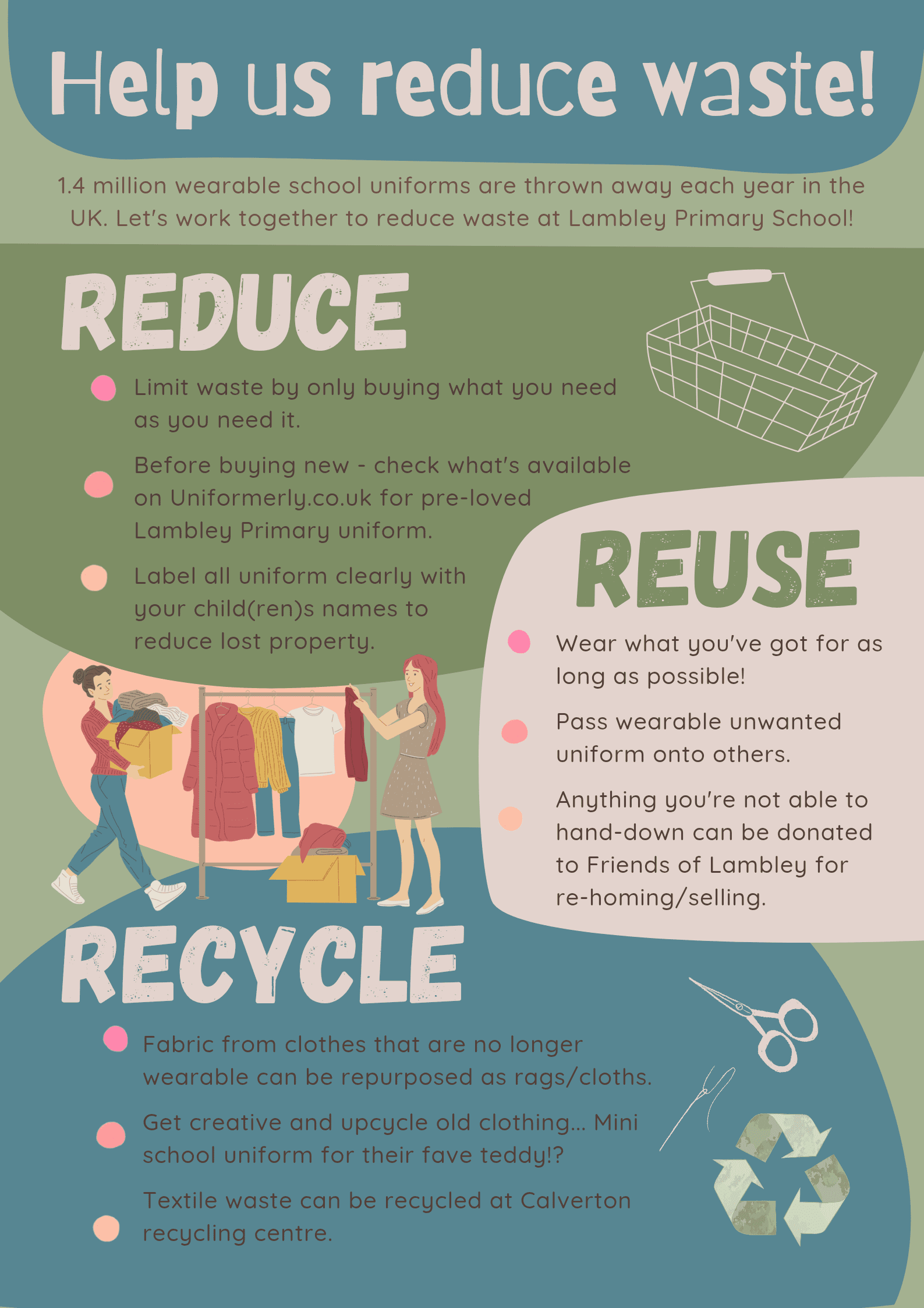 The school (and the Friends of Lambley) are also looking for donations – so please do think of Uniformerly when you no longer need old uniform. It can be recycled; it can go to a new home.
